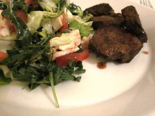 Olen ollut flunssassa ja tänään jaksoi vihdoin tehdä jotain järkevää ruokaa, vaikkakin helppoa ja nopeaa. Poikakaverin perhe käy hirvimetsällä ja on aika etuoikeutettu olo kun sieltä saa hirvenlihaa pakastimen täydeltä. Tässä siis hirven ulkofilettä ja rucolasalaattia. Kaikessa yksinkertaisuudessaan tämä on varman yksi lempiruoistani!